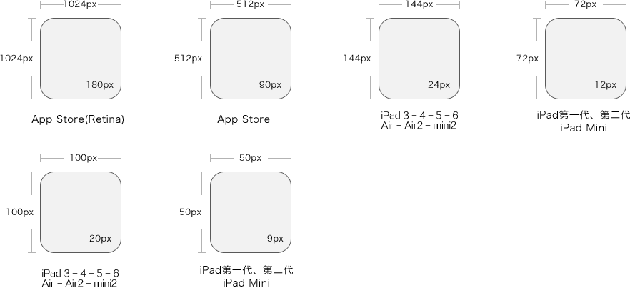 1024×1024 px | 120×120 px | 114×114 px | 58×58 px | 75×75 px | 44×44 px |