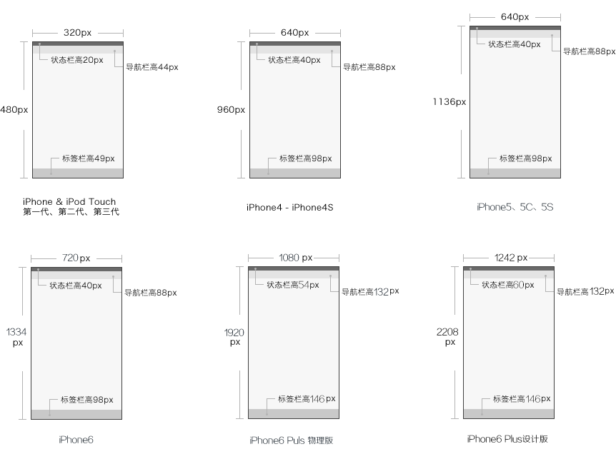 | Device | Size | Resolution | Status Bar Height | Navigation Bar Height | Tab Bar Height |